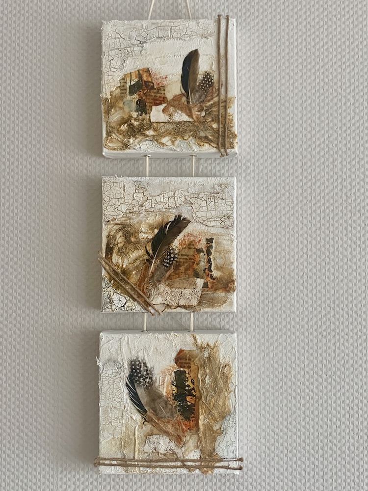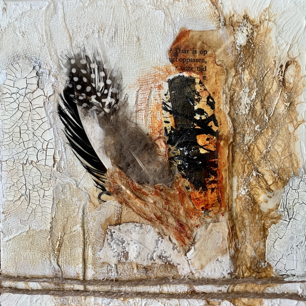 Ik vind het heerlijk om allerlei technieken te ontdekken en te combineren in mijn mixed media schilderijen. Ik werk met Powertex in combinatie met verschillende vullers en materialen. Verder is het ook fijn om bijvoorbeeld Cold Wax en Encaustic te combineren met de diverse mixed media technieken. En ik speel graag met allerlei materialen uit de natuur die ik in mijn schilderijen kan verwerken. Het ontdekken van de mogelijkheden is eindeloos en voor mij is Mixed Media veel meer dan een collagetechniek.