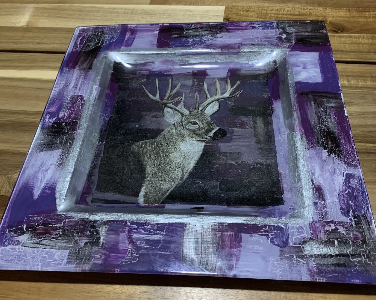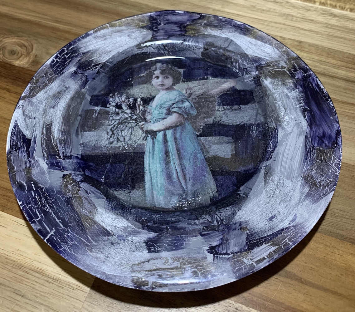 Voor de glazen schalen en de schilderijtjes heb ik emaille verf gebruikt van Gart’aVous. Na droging is de verf echt hard en zal hij niet meer van het glas afgaan. Doordat je werkt aan de onderkant van het glas, krijg je een bijzondere uitstraling met heel veel diepte.