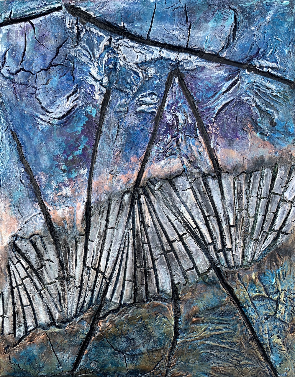 I completely forget the world around me when I’m doing some matter painting in my studio. A total sense of calm falls over me. I melt together with the canvas and the materials that go through my fingers. I work completely on my intuitions and feelings, and therefore an important piece of my soul touches the canvas. My heart comes out, filled with passion and love, I have total respect for the canvas and the materials I work with.